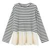 Long Sleeve Oversized Knitted Lace Vintage Stripe Casual Loose Spring Autumn Winter T Shirt Tops Women T-shirt