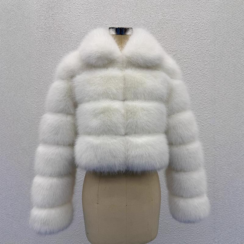 S-6X Short Imitation Fox Fur Jacket Women's Winter New Fashion Artificial Fur Splicing Crew Neck Coat