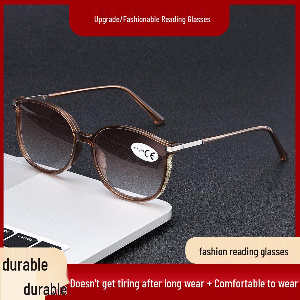 Retro Gray and Tea Lens Progressive Reading Glasses with Large Frame
