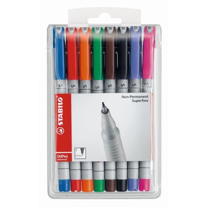 Feutres - STABILO - Pochette De 8 - Encre Soluble - Pointe Superfine 0,4