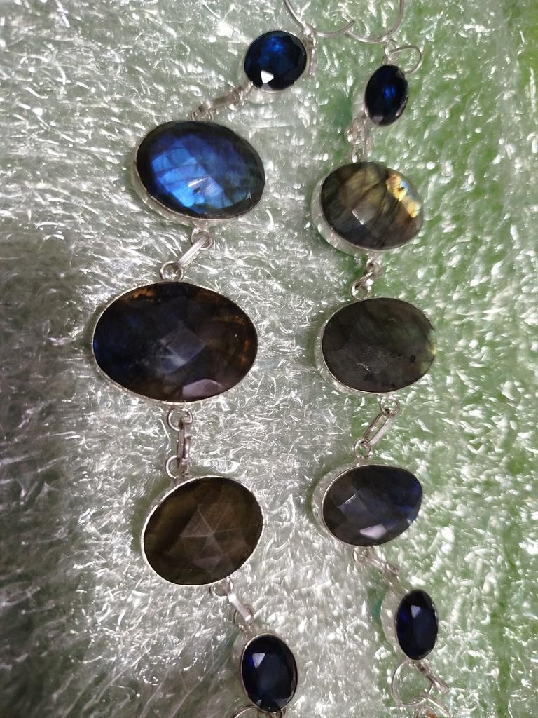 Natural Labradorite,Iolite Quartz Stone 925 Sterling Silver Bracelet 7-8" f8E19