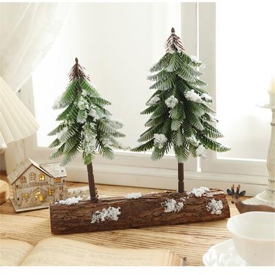 Small Snow Pine Tree Desktop Miniature Christmas Tree with Wood Base for Holiday Party Home Tabletop Decoration
