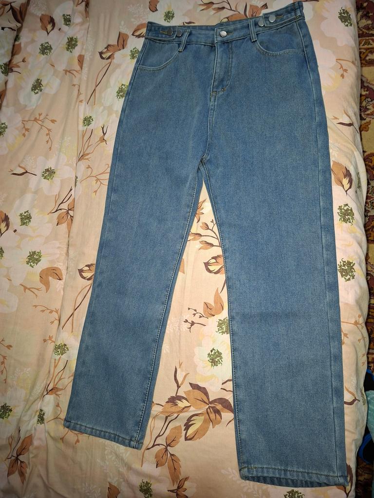 Thickened Fleece-lined Women's Jeans Winter Style Slimming Versatile Loose-fit Straight-leg Bell Bottoms