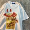 Happy French Fries American Retro Fun Printed Short Sleeved Men Women T-shirt Fashion Loose And Versatile Couple Outfit Cotton
