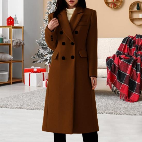 Stay warm and stylish with this Women's Coat made of high-quality polyester for ultimate comfort. The fashionable solid color design exudes elegance, perfect for daily wear or work settings. Featuring a lapel button design, this long jacket adds a touch of sophistication to any outfit.