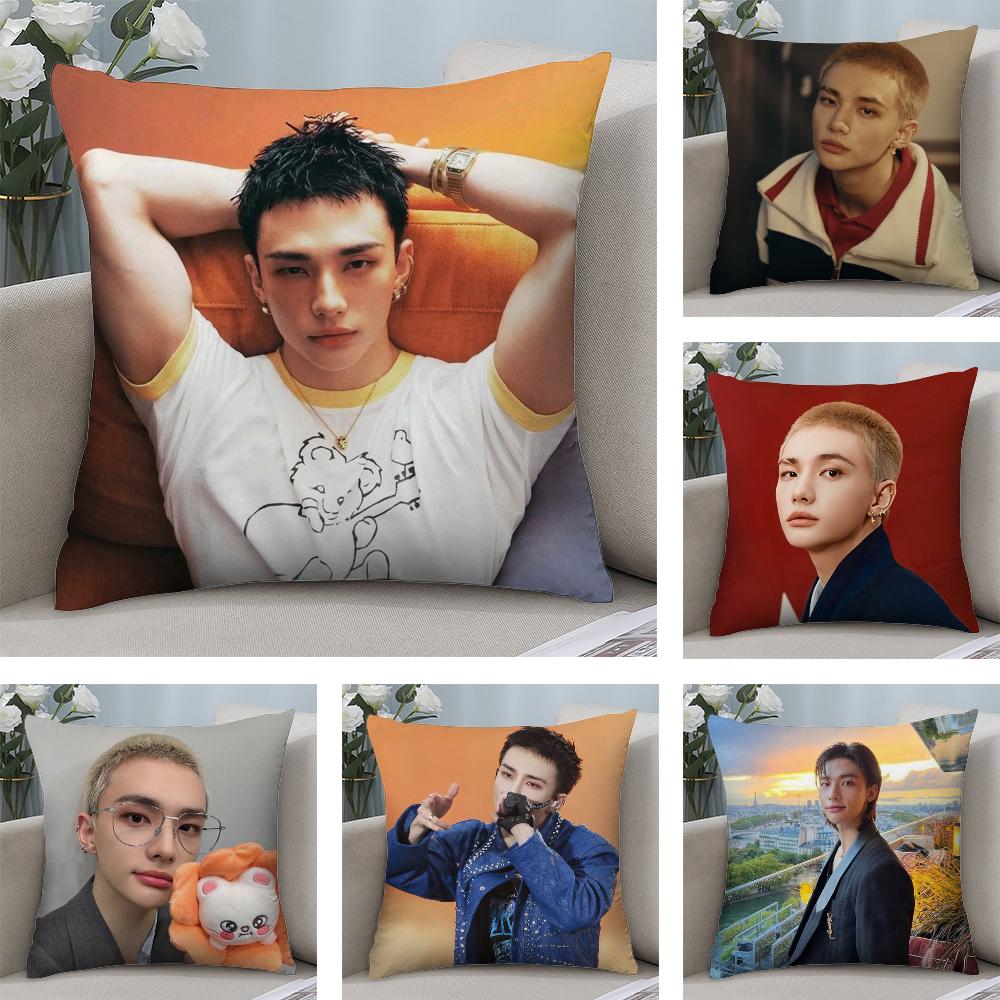 HOT-KPOP Idol h-Hyunjin Pillow Case Short Plush Sofa Decorative Gift Home Double-sided Printing Cushion