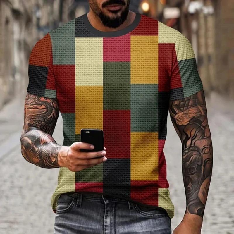 Color Block Splicing 3D Print T-Shirts Streetwear Men Fashion Casual Oversized O-Neck Short Sleeved T Shirt Tees