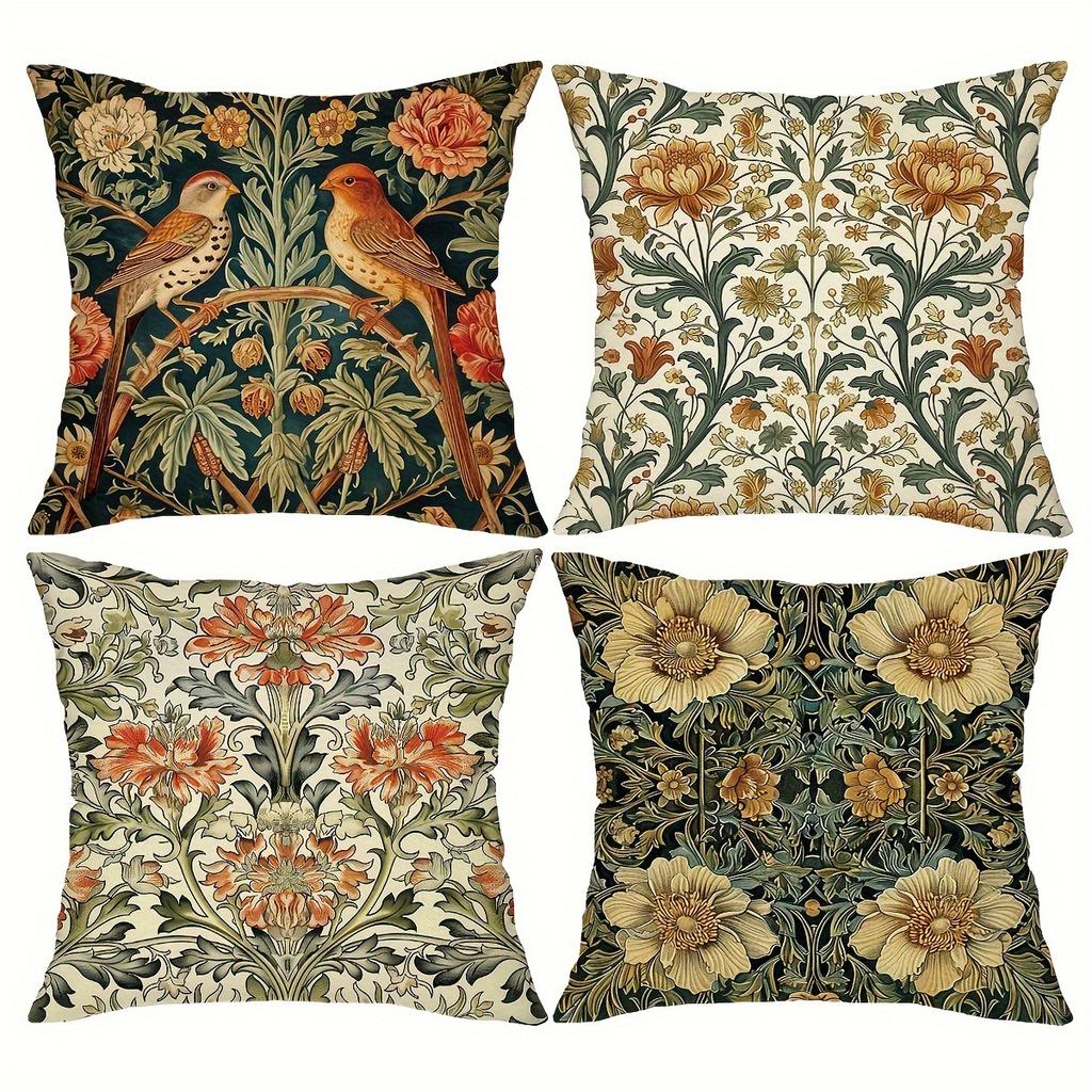 Vintage Flower and Bird Throw Pillow Covers Linen Zippered Cushion Cases for Farmhouse, Living Room Decor Pillowcases