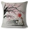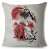 Japanese Style Ink Cushion Cover for Sofa Home Car Decor Beautiful Scenery Cat Girl Pillowcase Polyester Pillow Case 45x45cm