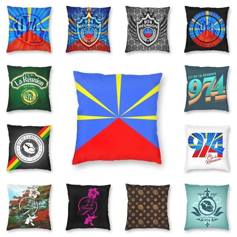 974 Reunion Island Flag Square Throw Pillow Case Home Decor Polyester Print Ile De La Reunion Cushion Cover for Living Room Sofa
