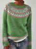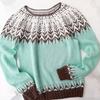 Color Block Round Neck Pullover Women's Fashion Long Sleeve Sweater Luxurious Loose Fit Slimming Versatile Casual Knit Top
