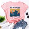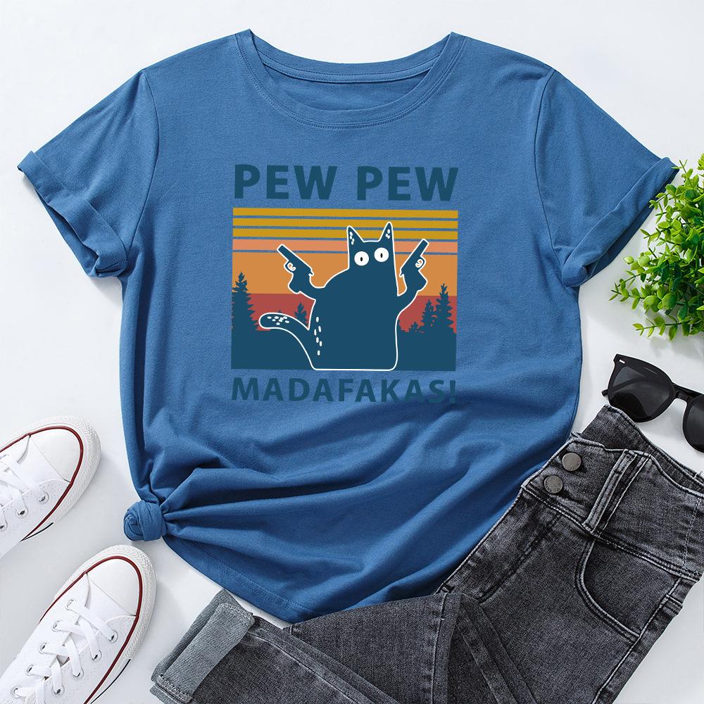 PEW Letters Cotton T-Shirt Short Sleeve Round Neck Women 2d Print Tops