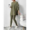 Casual O-neck Two Piece Set Women Outfits Autumn Winter Fashion Solid Knitted Long Sleeve Sweater Elegant Loose Pants Suit
