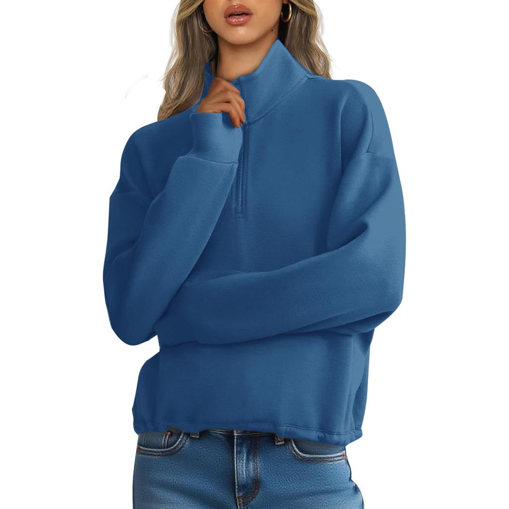 Women's Fashion Casual Half-Zip Cardigan Solid Color Sweatshirt