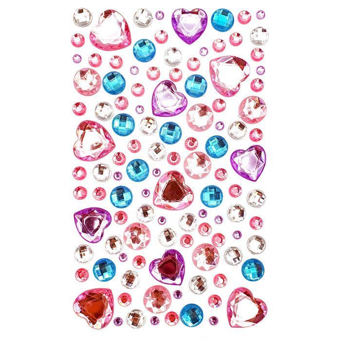 Pastel Colored Heart Rhinestone Stickers 0.7 To 1.7 Cm 109 Pieces
