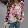 New Loose Casual 3D Floral Print Pattern Women's Round Neck Long Sleeved T-shirt