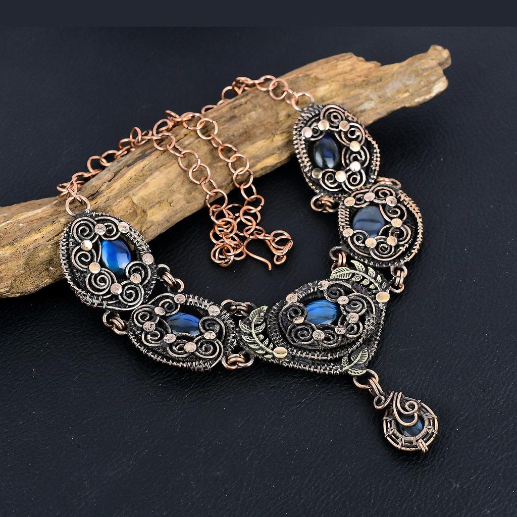 Labradorite Necklace Gemstone Jewelry, 999 Copper Wire Wrapped Adjustable Chain Necklace, Gift For Women Handmade Necklace