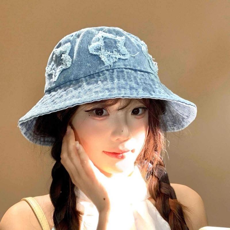 Autumn Washed Old Denim Hat Women's Bucket Hat Washbasin Hat Pentagram Versatile Bucket Hat