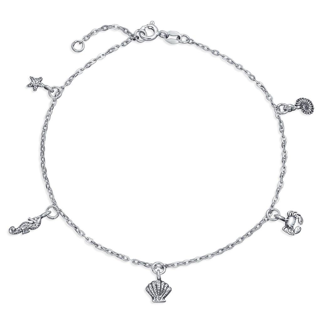 The magnificent sea creatures included in these sterling silver anklets include starfish, commonly known as starfish, sea horses, crabs and ammonite shells.