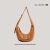 Lazy Wind Simple Solid Color Soft Leather Large Capacity Dumpling Bag Premium Casual Versatile Single Shoulder Messenger Commuter Tote Bag