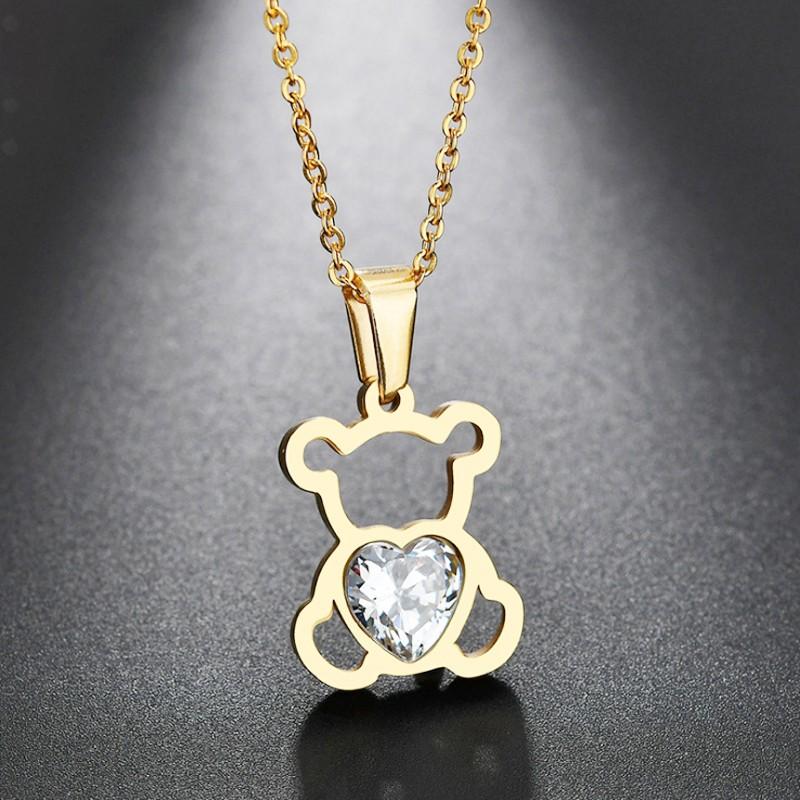 1 Cute and Simple Hollowed Out Zircon Bear Necklace, Stainless Steel Pendant - Valentine's Day Gift for Men and Women
