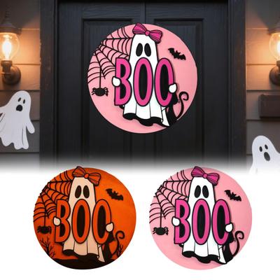 Halloween Wooden Pendant Sign Wooden Pink Ghost BOO Door Decor Fall Farmhouse Outdoor Porch Decoration