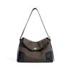 New Large-capacity Tote Bag Under the Armpit, Wool Plaid Canvas with Cowhide Girls' High-end Shoulder Bag for Women