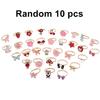 10/20/36 Pcs Cute Adjustable Rings Children Girls Pretend Play Makeup Toys Cartoon Crystal Jewelry Alloy Animal Enamel Ring
