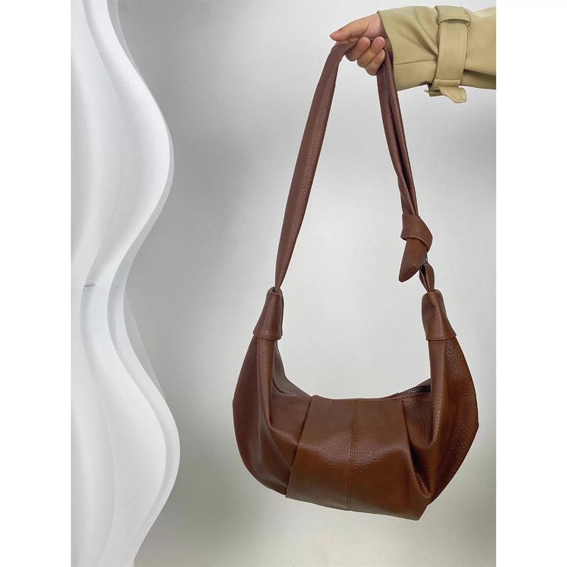 Retro Soft Leather Pleated Dumpling Bag Lazy Style Casual Versatile Commuter Shoulder Messenger Bag Croissant Bag
