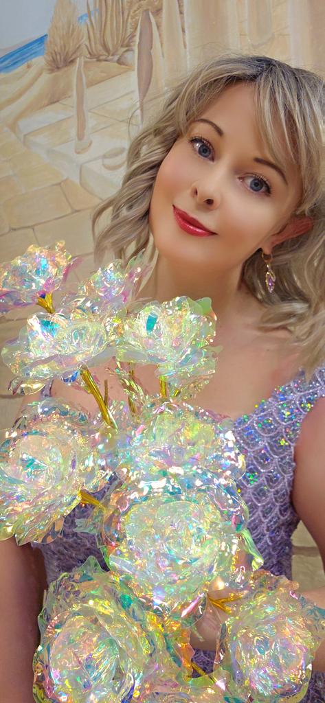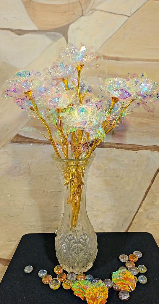 Stunning set of 19 glowing decorative roses, size 8*24 cm. Each flower is colorful and artificial, perfect as a decoration for a room, for events, or as a unique gift for girls. Adds a romantic and warm atmosphere, especially in the evening hours. Also suitable for table decoration, a shelf, or an exciting birthday gift.