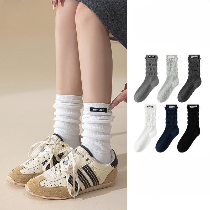 Female Autumn and Winter Trend Cloth Label Boneless Bubble Mouth Tube Stack Socks
