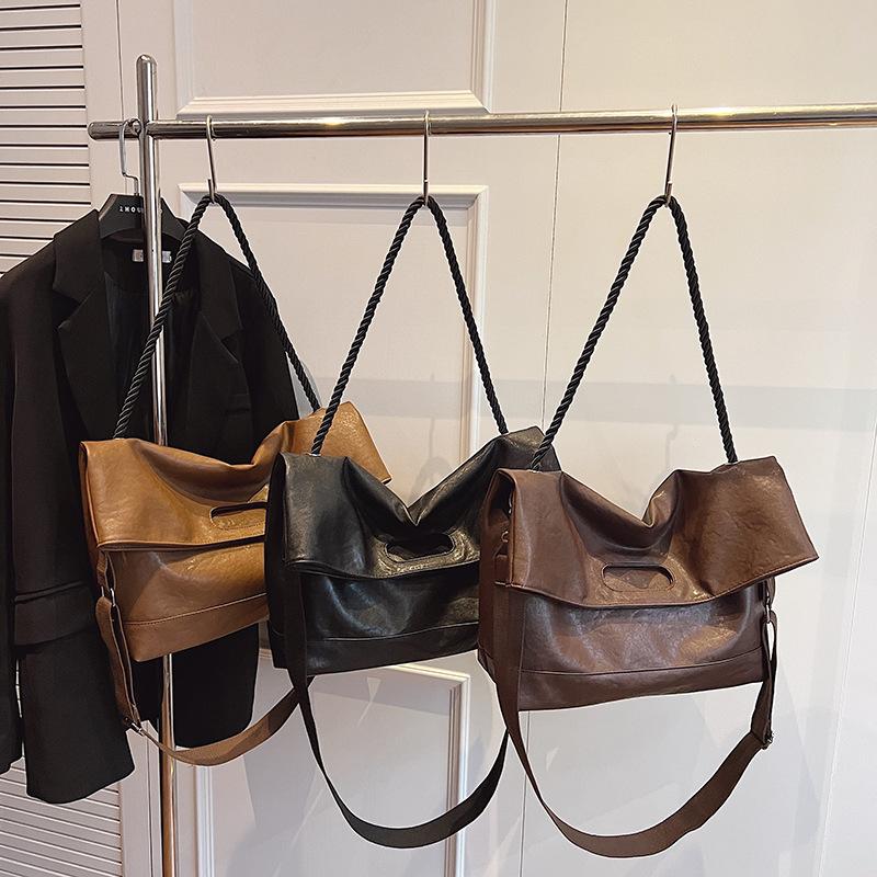 Retro Soft Leather Large-capacity Tote Bag Women's New Commuter Simple Large Bag Student Class Shoulder Messenger Bag