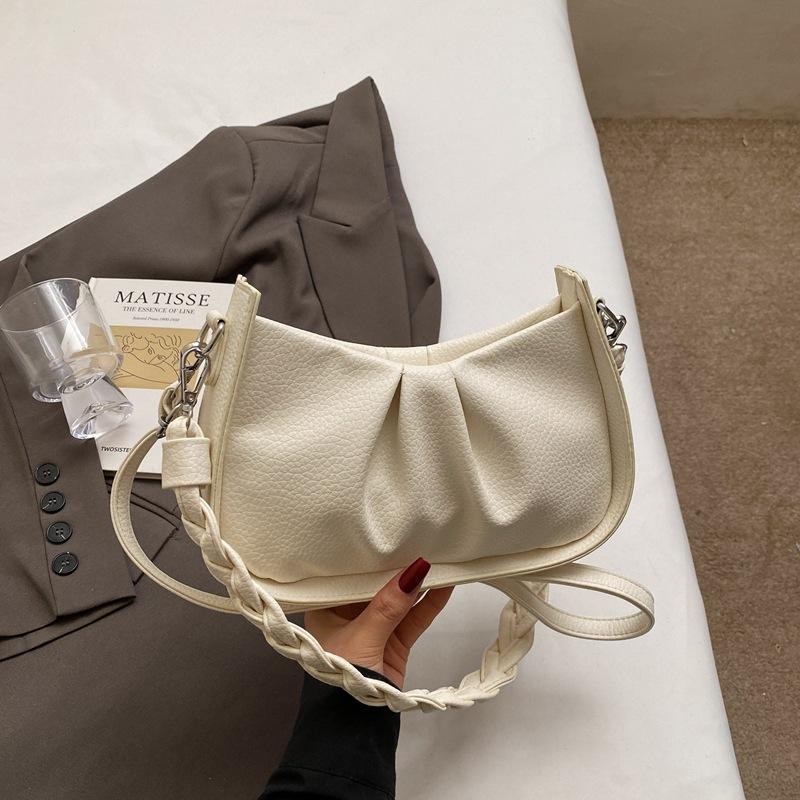 Summer New Trendy Simple Casual Small Square Bag Fashionable Shoulder Bag Pleated Underarm Bag Small Bag Women
