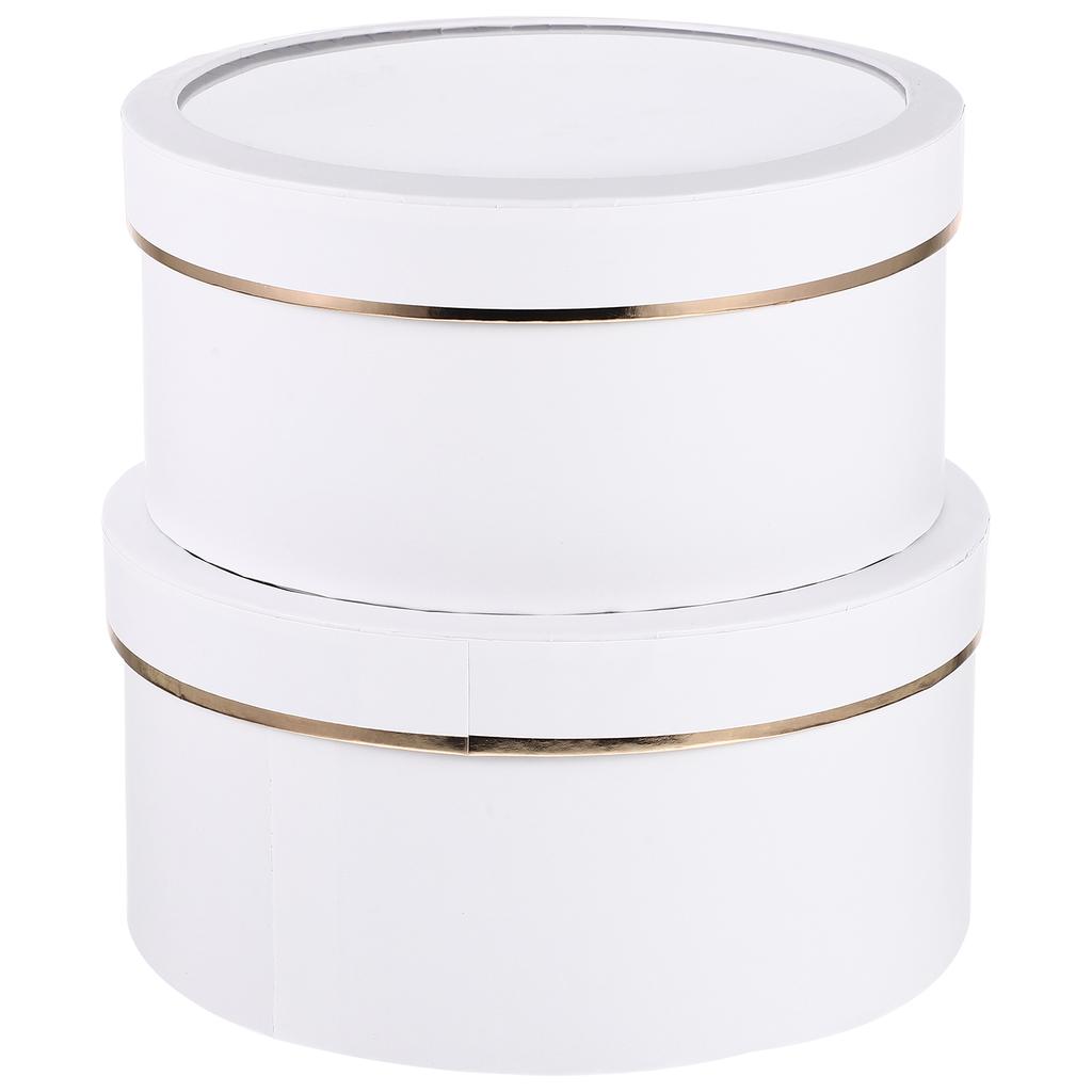 2 Pcs Round Gift Package with Window-Type Holes Boxes for Flowers Arrangements Floral Favor White