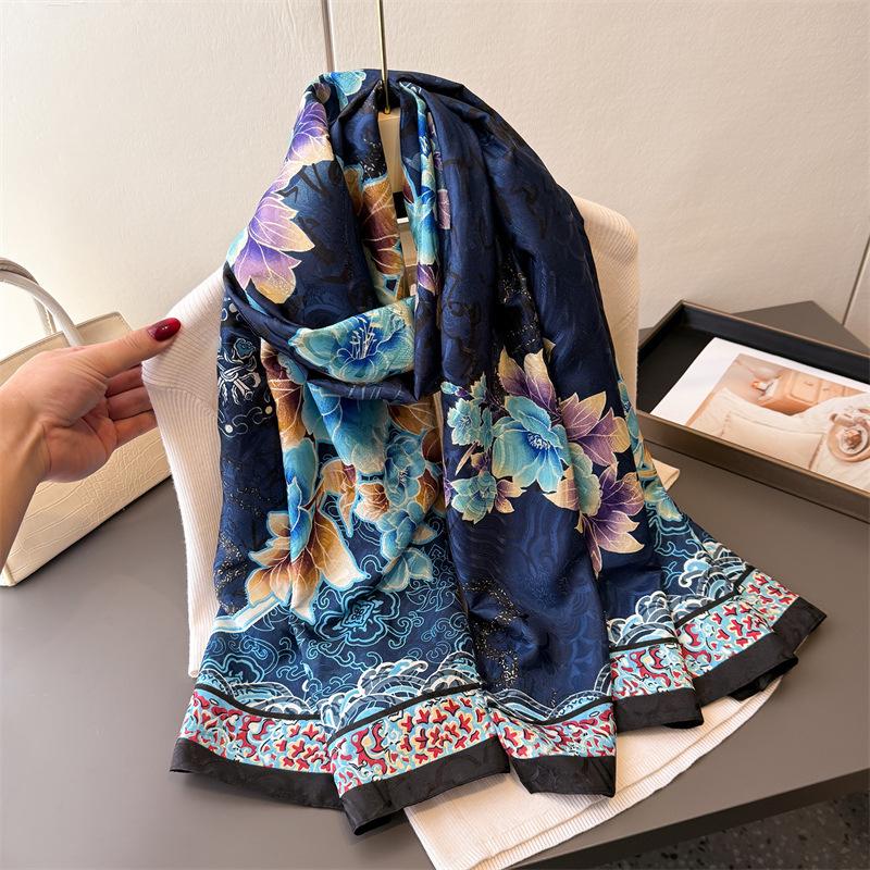 Peony Fenghua Printed Fragrant Cloud Yarn Spring And Summer Silk Scarf Large Long Scarf Travel Shawl Sunscreen Women'S Scarf Headscarf