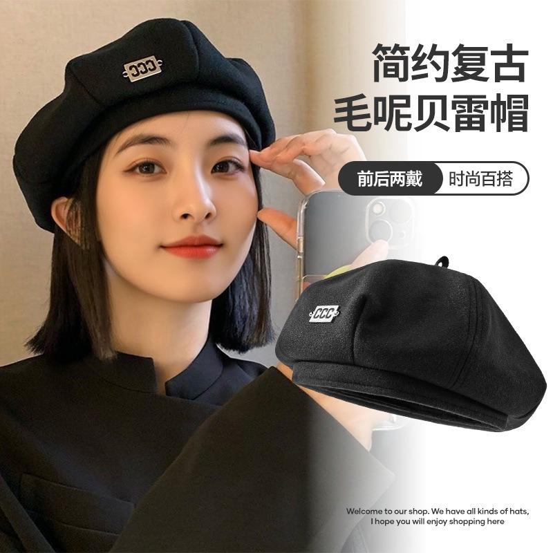 Beret Female Autumn and Winter Big Head Circumference Showing Face Small Iron Standard Painter Hat Black Versatile Retro Hat