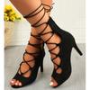 Fashion Black Sexy Lace Up Cross-tied Women Shoes Comfort High Quality Thin Heels Open Toe Dancing Sandals Ankle Strap Hollow Out Pumps