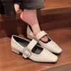 Fashion Shoes for Women New Style Square Head Rhinestone Square Buckle Flat Bottom Mary Jane Single Shoes Woman Pumps Zapatos De Mujer