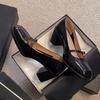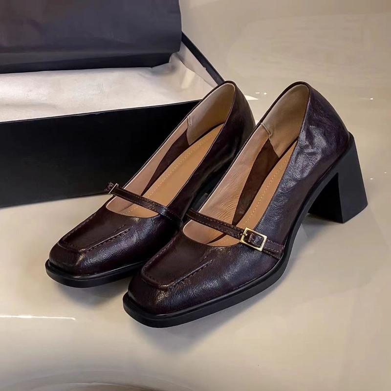 Fashion Genuine Leather One Word Belt Shallow Mid Heel Pumps Mary Jane All-Match Casual Shoes Square Toe Platform Lovely Women Sandals