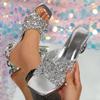 Fashion Women High Heels Sandals Summer Crystal Thick Heel Sandals Rhinestone Square Head Shallow Mouth Women Shoes Sandalias De Mujer
