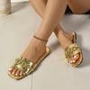 Fashion 2025Summer New Fashion Plus Size Flat Slippers Women's Square Toe Rhinestone Metal Chain Soft Slip Non-slip Flip Flops
