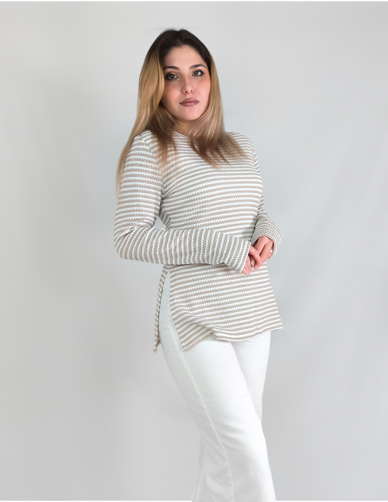 New Round-neck Slit Long-sleeved Versatile Casual Women's Base Layer T-shirt