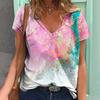 Women's V-neck Short Sleeve T-shirt Gradient 3D Printed T-shirt Personality Fashion Streetwear Girls Short Sleeve Top Clothing
