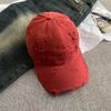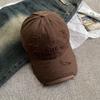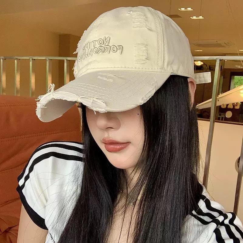 Ripped Beige Letter Baseball Cap, Wide Brim, Big Face, Small Female Cap, Big Head Circumference Hat.