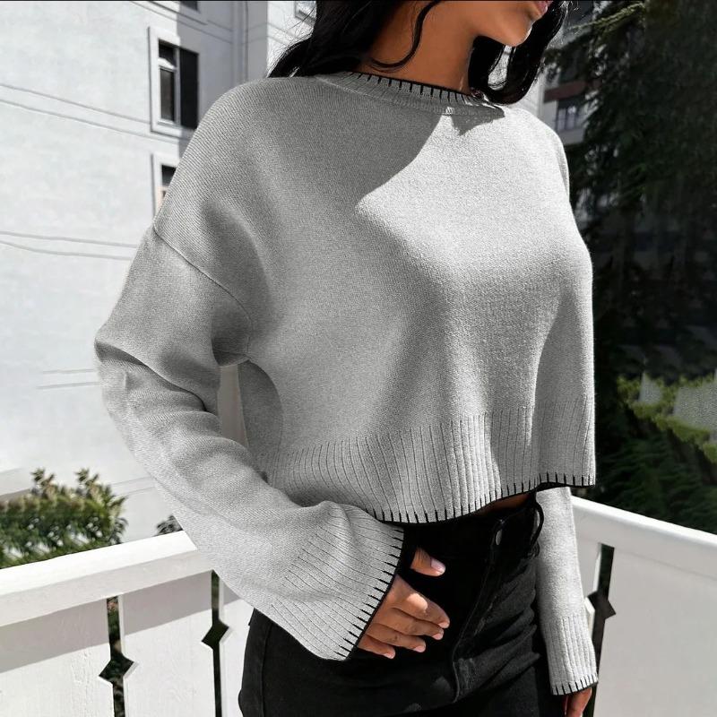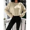 High Waist Contrasting Color Knitted Sweater Women's Early Autumn New Loose Short Pullover Sweater