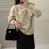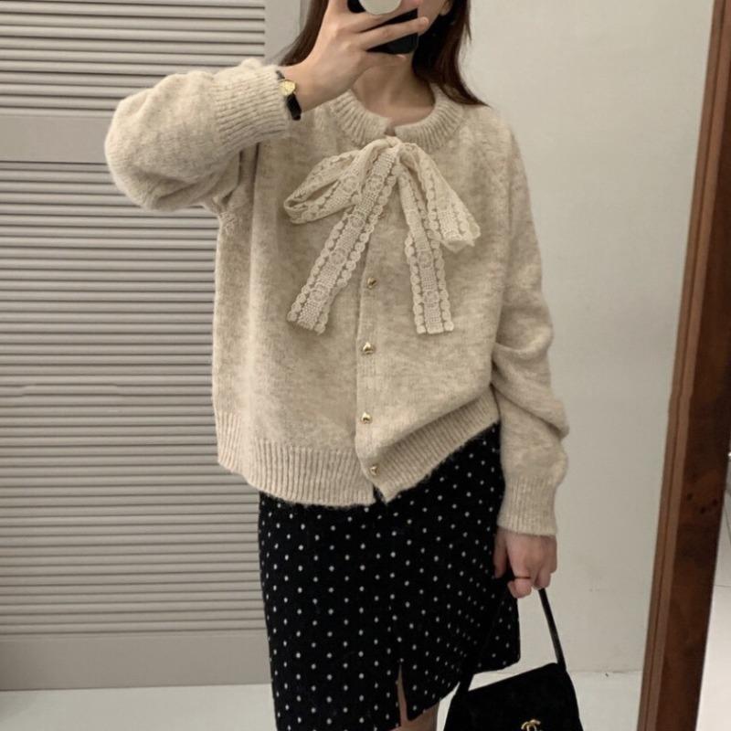 Lace-up Lace Bow Crew Neck Sweater Jacket Women's Autumn and Winter Loose Love Gold Button Knitted Cardigan Women