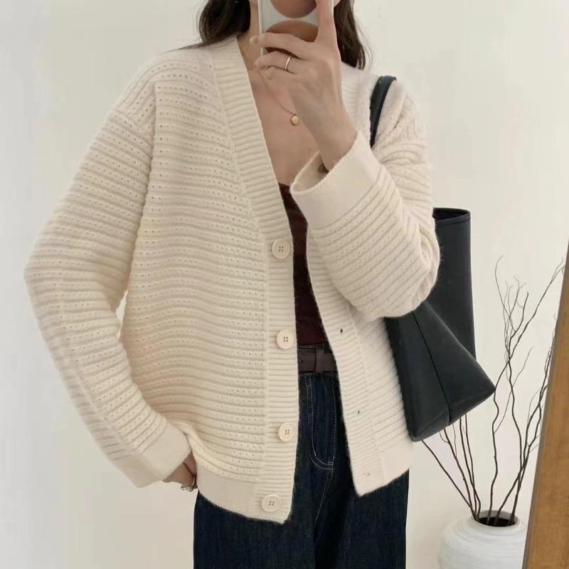 Simple V-neck Sweater Jacket Women's Autumn and Winter New Loose Soft Waxy Lazy Wind Knitted Cardigan Top
