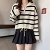 Half Zipper Turtleneck Striped Sweater Women's Autumn and Winter Small Thickened Loose Lazy Pullover Short Knitted Sweater