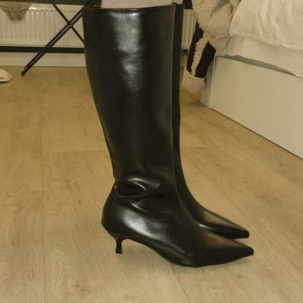 Fashion Pointed Toe Women High Boots Leather Fashion Sexy Heels Shoes Woman Trend New Snow Boots Low Heels Elegant Goth Mujer Botas
