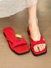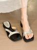 Fashion Elegant Square Head Open Toes Casual Dragging for Women 2025 Summer New Fashion Comfortable Flat Slippers Outdoor Beach Sandals